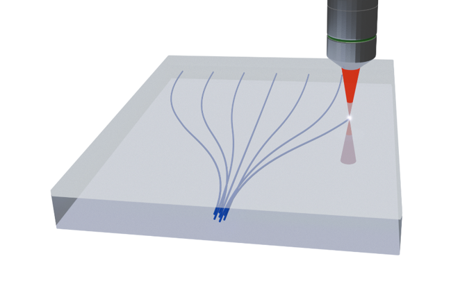 激光直寫3D波導技術利用自開發(fā)的飛秒激光直寫設備,通過精確控制激光在玻璃基材上的寫入,實現(xiàn)高精度的三維波導結構。該技術具有低損耗、高密度、精細加工的優(yōu)勢,能夠在微米級別上精確調控光的傳播路徑,廣泛應用于光學通信、傳感器和光電集成等領域,推動光通信器件和模塊的創(chuàng)新與發(fā)展。